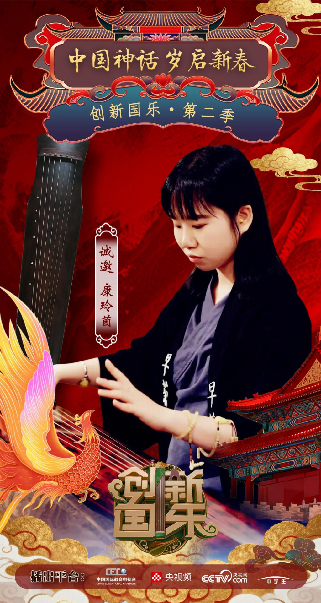 为持续推动中华优秀传统文化的创造性转化与创新性发展,打造具有时代气息的国乐精品,创新国乐第二季“中国神话 岁启新春”大型原创国乐盛典2026年2月8日在北京首钢园隆重启幕!在此,我们特别向学员康玲茵发出正式演出邀请,期待她以更加成熟的技艺与表现力,与我们共同演绎华夏神话的壮丽诗篇。