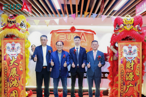 11时15分,象征吉祥的双狮贺喜点睛仪式将气氛推向高潮。由8i资本集团董事长Mr. James Tan 手持朱砂为瑞狮点睛,寓意采青纳福,事业兴旺。紧接着,剪彩环节中,贵宾们挥舞金剪子剪断彩带,EUDA中国区总裁、科陇集团董事长张国辉先生邀请James一起移步形象墙揭开EUDA中国区总部的未来篇章,现场掌声雷动。象征EUDA品牌正式扎根深圳这一亚洲创新枢纽。仪式后,嘉宾合影留念,并参观中国区总部办公区,直观感受EUDA的创新基因。