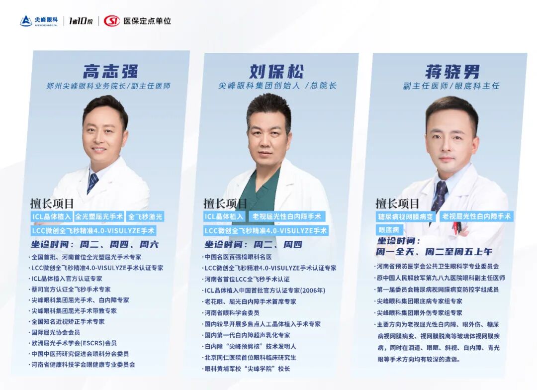 欢迎有近视矫正、白内障、眼底病等诊疗需求的患者通过郑州尖峰眼科医院官方渠道咨询预约王家良主任医师门诊,亲身体验 “专家级” 眼科医疗服务。