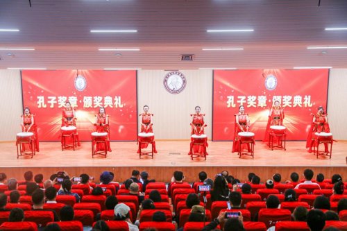 典礼在《中国范》震天动地的威风锣鼓中拉开序幕,磅礴的气势瞬间点燃全场。专题片《孔子奖章—托起鳌头的厚重荣光》,深情回顾了孔子奖章十年来的发展历程与不凡成就,凸显其“托举鳌头”的文化担当与历史使命。在庄严肃穆的祭孔音乐声中,全体与会人员怀揣对至圣先师孔子的无上敬仰与对中华灿烂文明的深沉感恩,肃然起立,向大屏幕上的孔子像行庄严的三鞠躬礼。这一古朴而隆重的仪式,不仅是对两千五百年儒家文化缔造者的崇高致敬,更是对融入中华民族血脉的文化基因的自觉叩问与传承宣誓,将现场氛围推向庄严深邃之境。