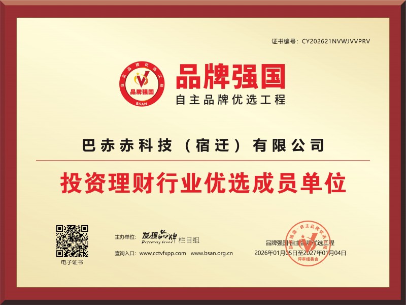 以数字科技重塑高端家纺,引领行业转型新标杆2026年1月22日讯——近日,高端家纺科技品牌巴赤赤科技有限公司(以下简称“巴赤赤科技”)正式通过“品牌强国优选工程”综合评定,获选为投资理财行业优选成员单位。此次入选标志着巴赤赤科技在品牌价值、商业模式与产业创新方面获得国家级权威认可,也为其在全球市场中的数字化转型注入新动力。