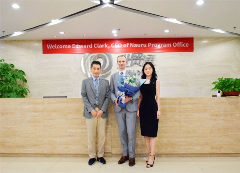 瑙鲁投资入籍办公室CEO Edward Clark先生(中)与世贸通集团董事长Winner Xing博士及世贸通集团副总裁Li Ma女士合影