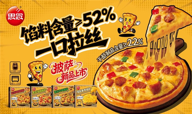 中国速冻披萨市场呈现爆发式增长态势,2024年市场规模已达96亿元,未来三年有望保持年均30%以上的复合增长率。面对这一蓝海市场,思念食品精准洞察年轻消费者对便捷西式餐饮的需求,推出四款速冻披萨新品,以“主流口味+高馅料+高性价比”为核心标签,打造流量爆款。