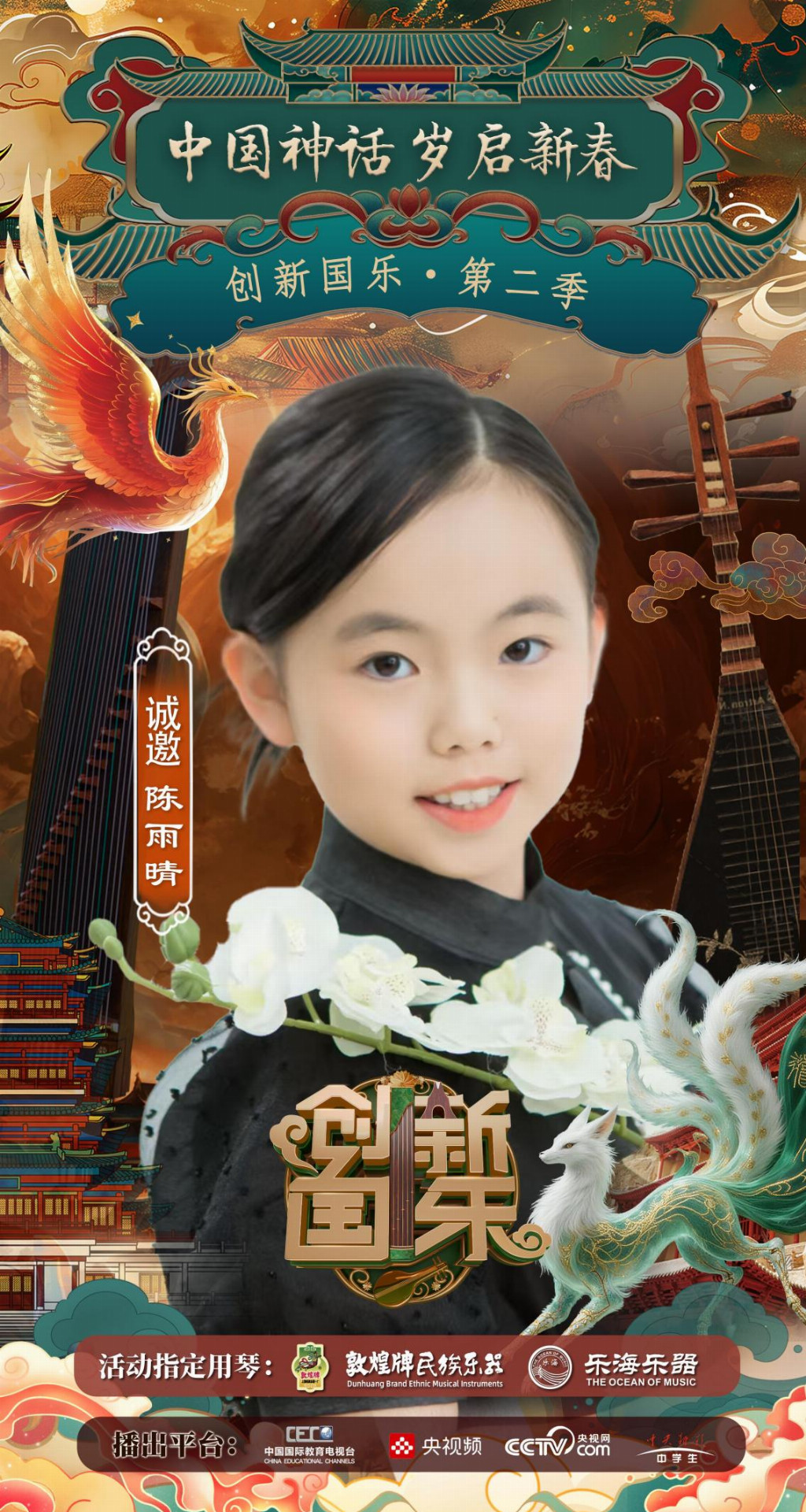 为持续推动中华优秀传统文化的创造性转化与创新性发展,打造具有时代气息的国乐精品,创新国乐第二季“中国神话 岁启新春”大型原创国乐盛典2026年2月8日在北京首钢园隆重启幕!在此,我们特别向学员陈雨晴发出正式演出邀请,期待她以更加成熟的技艺与表现力,与我们共同演绎华夏神话的壮丽诗篇。