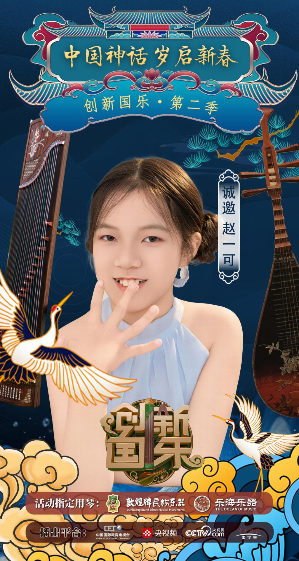 为持续推动中华优秀传统文化的创造性转化与创新性发展,打造具有时代气息的国乐精品,创新国乐第二季“中国神话 岁启新春”大型原创国乐盛典2026年2月8日在北京首钢园隆重启幕!在此,我们特别向学员赵一可发出正式演出邀请,期待她以更加成熟的技艺与表现力,与我们共同演绎华夏神话的壮丽诗篇。