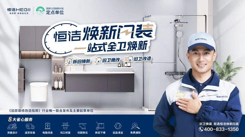 场景化创新破解行业难题:针对卫生间改造周期长、小品牌维修无门等痛点,推出“焕新闪装”一站式服务,涵盖测量设计、拆旧清运、电路改造等8大省心环节;“不分品牌”服务打破品牌壁垒,无论用户使用何种品牌的卫浴产品,均可享受恒洁专业维保支持,惠及更广泛消费群体。
