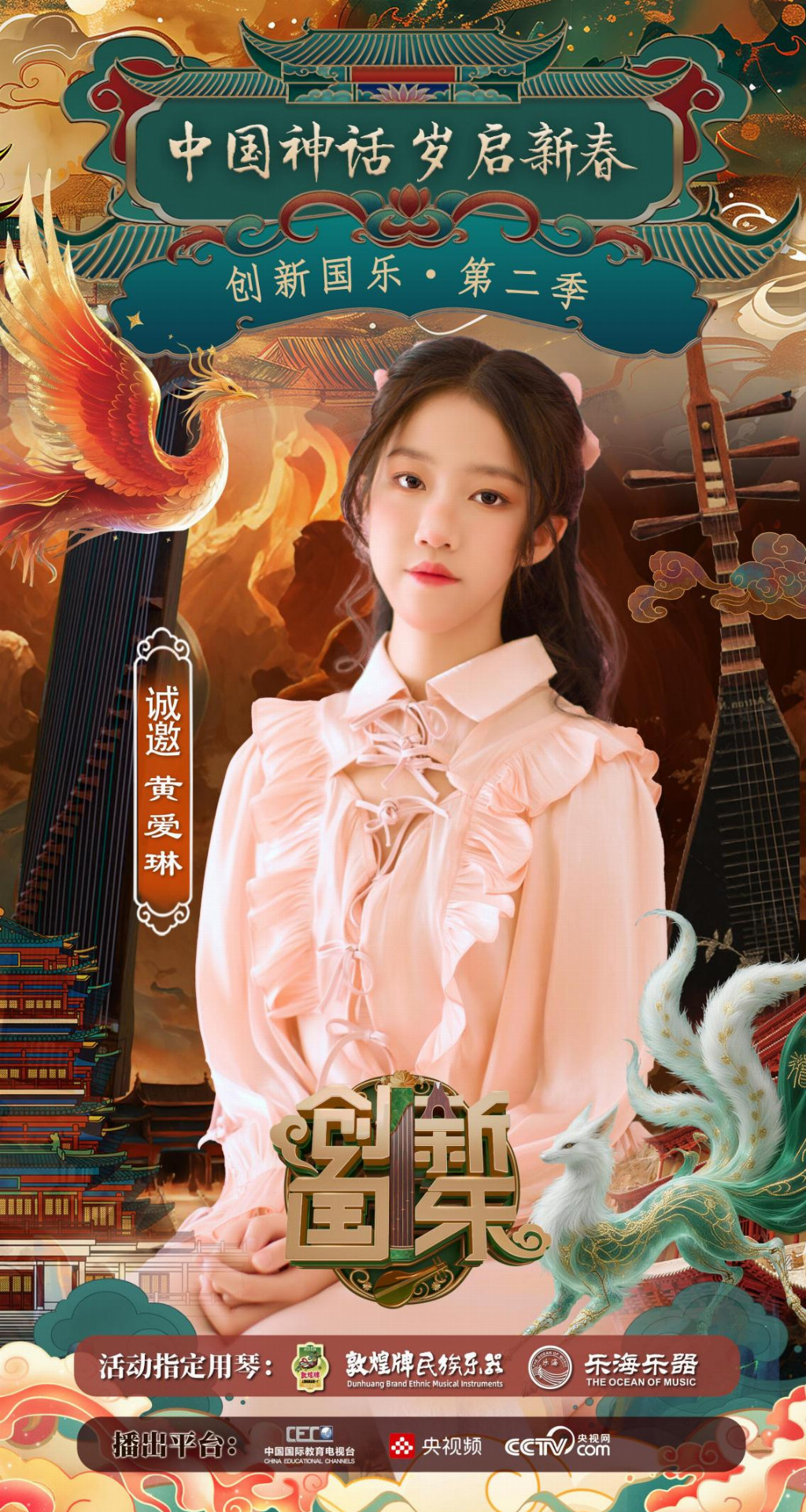 为持续推动中华优秀传统文化的创造性转化与创新性发展,打造具有时代气息的国乐精品,创新国乐第二季“中国神话 岁启新春”大型原创国乐盛典2026年2月8日在北京首钢园隆重启幕!在此,我们特别向学员黄爱琳发出正式演出邀请,期待她以更加成熟的技艺与表现力,与我们共同演绎华夏神话的壮丽诗篇。