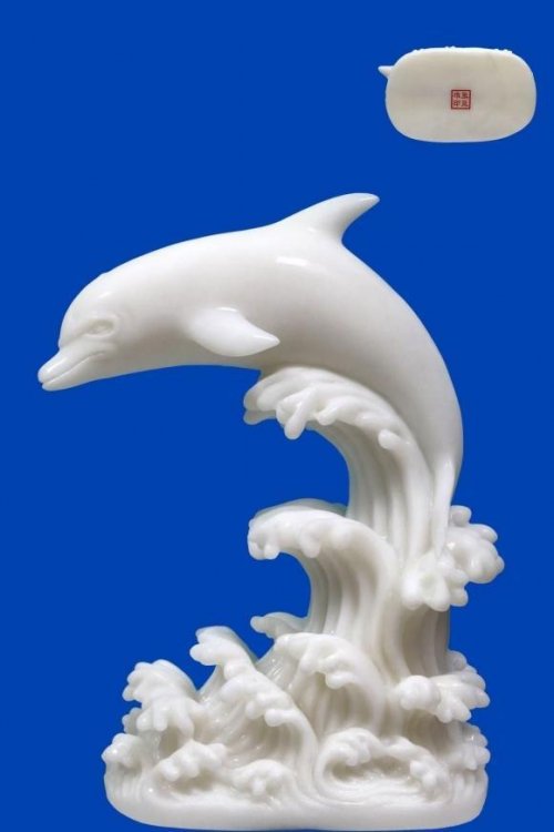 材质与主题契合:选用温润的汉白玉作为雕刻材料,其洁白的色泽与中华白海豚的纯净形象相得益彰,象征着中华白海豚的珍贵与纯净。同时,汉白玉质地坚韧,也呼应了生命面对浩瀚海洋所展现的顽强与韧性。