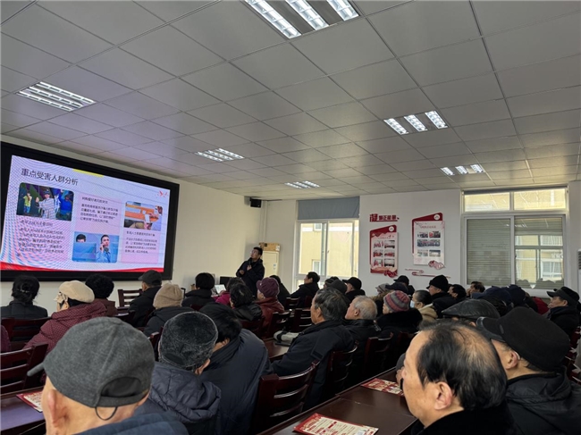 活动现场,首先由农商银行反诈专家开展专题宣讲。专家结合近期高发电信网络诈骗案例,深入浅出拆解诈骗套路,细致传授识别技巧与防范方法,并现场解答群众疑问,帮助党员干部与居民群众提升反诈意识,筑牢财产安全防线。党员同志们主动带头学习,承诺将反诈知识传递给身边亲友,助力构建“全民反诈、人人有责”的安全屏障。