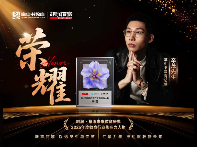 在本次胡润耀眼未来教育盛典上,掌中书教育凭借其在医考培训教育领域的卓越表现,一举斩获“2025年度职业教育影响力品牌”奖项,其创始人兼CEO辛茂同时获评“2025年度职业教育影响力个人”。