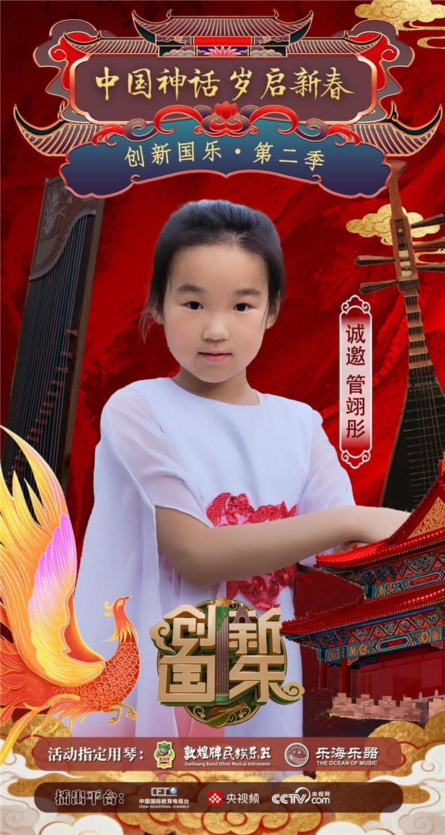 为持续推动中华优秀传统文化的创造性转化与创新性发展,打造具有时代气息的国乐精品,创新国乐第二季“中国神话 岁启新春”大型原创国乐盛典2026年2月8日在北京首钢园隆重启幕!在此,我们特别向学员管翊彤发出正式演出邀请,期待她以更加成熟的技艺与表现力,与我们共同演绎华夏神话的壮丽诗篇。