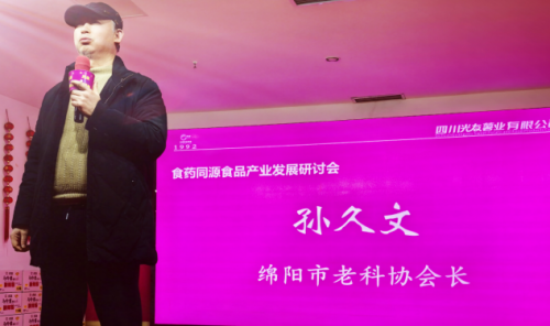 绵阳市老科协会长孙久文致辞:“各位领导、各位同仁,大家好!今天能和大家齐聚一堂,围绕医食同源科普宣传与老科协工作展开交流,对活动的成功举办表示祝贺。回顾过往,我们众解决温饱——吃得好——今天的吃得健康、安全的发展过程。今天,选择既契合时代需求,又贴近群众期盼的医食同源健康作为科普宣传的重点,其目的是为广大市民,特别是老年朋友传播食药同源相关知识,使大家能辨识了了解食药同源的产品和使用的方法,实现保健身体的作用,这就是活动的意义所在。