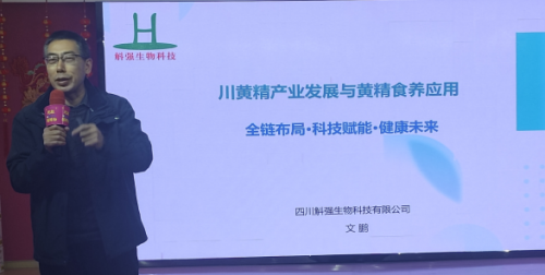 四川斛强生物科技有限公司董事长文鹏在《川黄精产业发展与黄精食养应用》的分享中,聚焦川黄精的种植培育与食养价值开发。他透露,斛强生物采用“公司+农户”模式,在绵阳三台县打造了800亩黄精种植基地,重点培育姜型多花甜黄精等优质品种,同时配套种植铁皮石斛、白及等中药材,形成多元化种植格局。文鹏指出,黄精作为传统药食同源品种,具有补气养阴、健脾益肾等功效,公司已成功开发黄精饮片、黄精养生茶等20多款产品,适配家庭养生、日常代餐等多元场景。未来将进一步优化种植技术,深化产学研合作,推动川黄精产业从种苗培育到终端产品的全链条升级,让道地药材走进寻常百姓家。