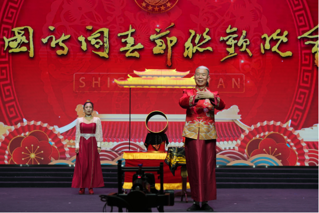 由中华诗词发展基金会、中国文化艺术发展促进会、中国文联《中国文艺家》、《诗词之友》、《对联》、当代诗词馆等联合举办的第十届中国诗词春节联欢晚会,1月18日在北京举行。中宣部原副部长、中国文联原党组书记、中国关心下一代工作委员会常务副主任胡振民题写了“诗情词意,年喜春华”贺辞,并与李栋恒、毛炳、岳宣义、强勇等嘉宾以及首都市民、诗词爱好者近千人一起观看了录制演出。