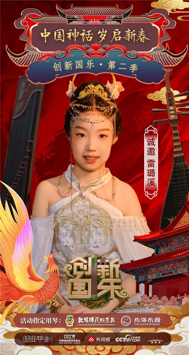 为持续推动中华优秀传统文化的创造性转化与创新性发展,打造具有时代气息的国乐精品,创新国乐第二季“中国神话 岁启新春”大型原创国乐盛典2026年2月8日在北京首钢园隆重启幕!在此,我们特别向学员雷璐溪发出正式演出邀请,期待她以更加成熟的技艺与表现力,与我们共同演绎华夏神话的壮丽诗篇。