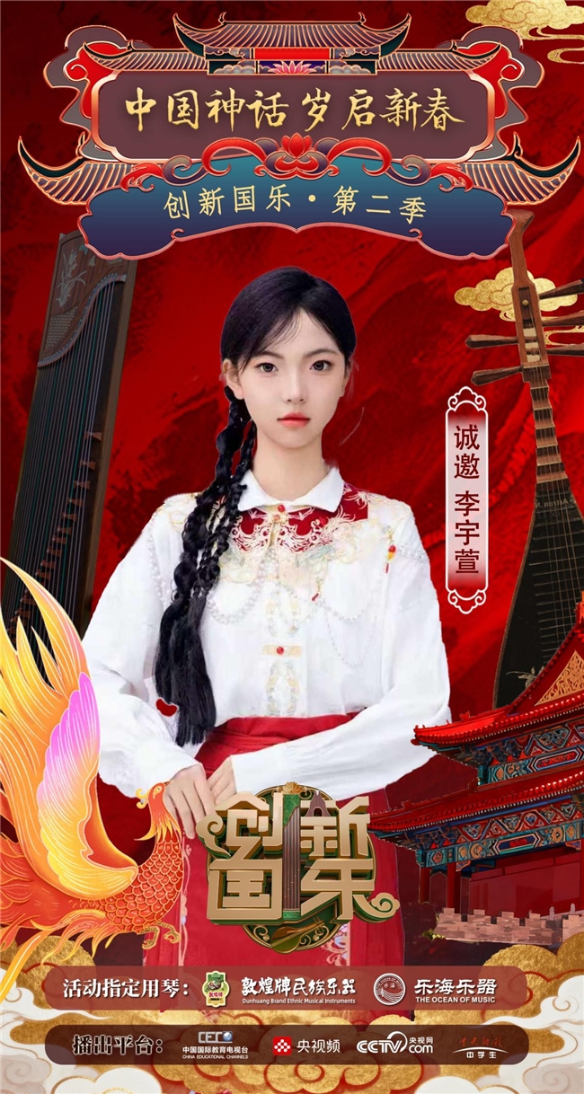 为持续推动中华优秀传统文化的创造性转化与创新性发展,打造具有时代气息的国乐精品,创新国乐第二季“中国神话 岁启新春”大型原创国乐盛典2026年2月8日在北京首钢园隆重启幕!在此,我们特别向学员李宇萱发出正式演出邀请,期待她以更加成熟的技艺与表现力,与我们共同演绎华夏神话的壮丽诗篇。