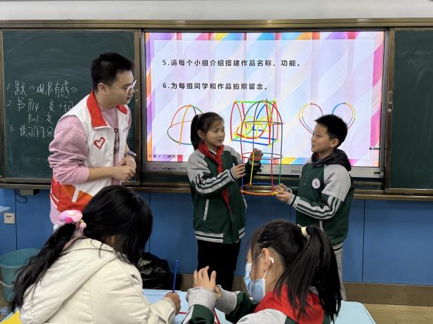 在此基础上,团队围绕能源安全、空间安全、心理健康、交通安全、科技启蒙和红色教育六大主题,系统组织完成12节标准化志愿服务课程,形成以“安全”为核心、以“成长”为导向的多元课程体系。志愿者通过互动体验、模型搭建、结构实验和主题分享等方式,将建筑专业知识融入科技实践活动,激发少年儿童科学兴趣与创新意识;通过榜样故事与理想引导,引导少年儿童树立正确价值观,促进德智体美劳“五育并举”协同发展。
