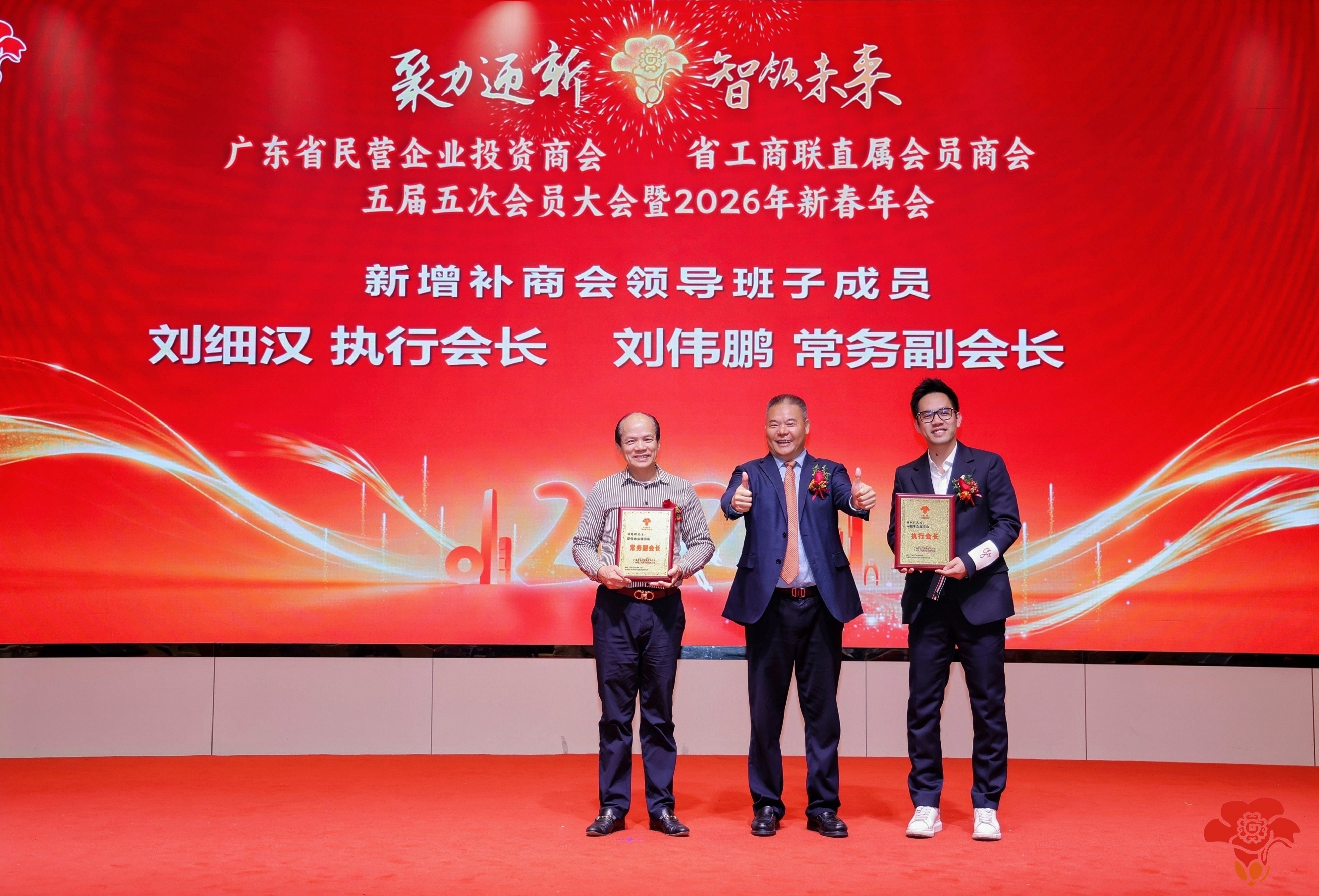 随后进行了新增补商会领导班子颁发会员证的环节,李苏华会长向新增补的刘细汉执行会长和刘伟鹏常务副会长颁发了会员证书。