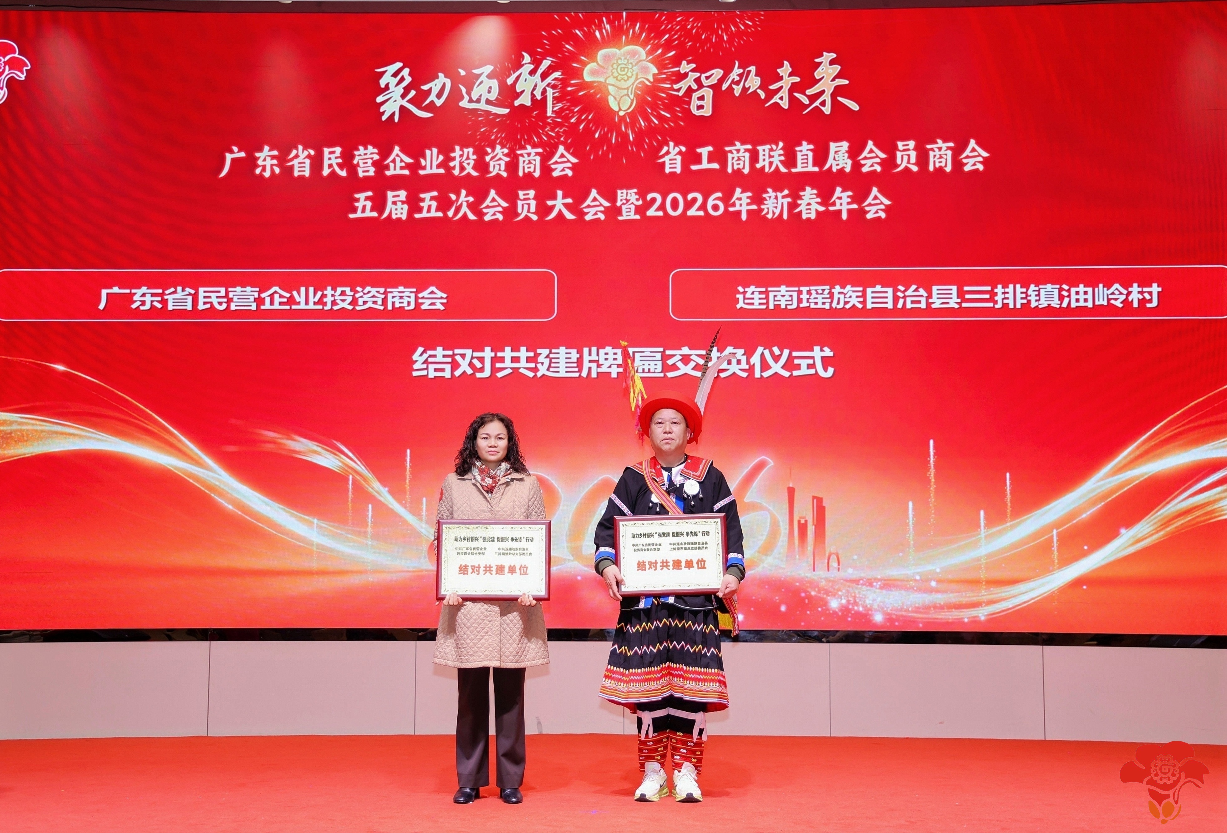 为深入贯彻落实省委省政府“百县千镇万村高质量发展工程”决策部署,推动民族地区乡村振兴,在省工商联和省非公党委的指导下,广东省民营企业投资商会聚焦连山和连南的发展需求,以“产业兴农、民生惠农”为主线前后多次组织民营企业家赴连山和连南走访调研,开展助力“百千万工程”乡村振兴帮扶活动,经过深入调研、多轮磋商,商会正式与连山上帅镇东南村、连南三排镇油岭村建立结对共建。会上进行了“结对共建单位”牌匾交换仪式。