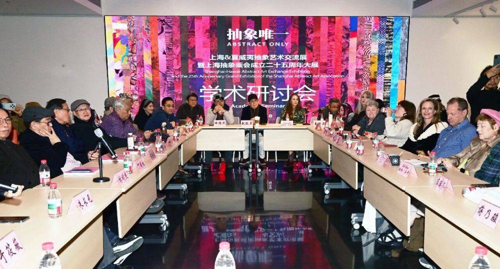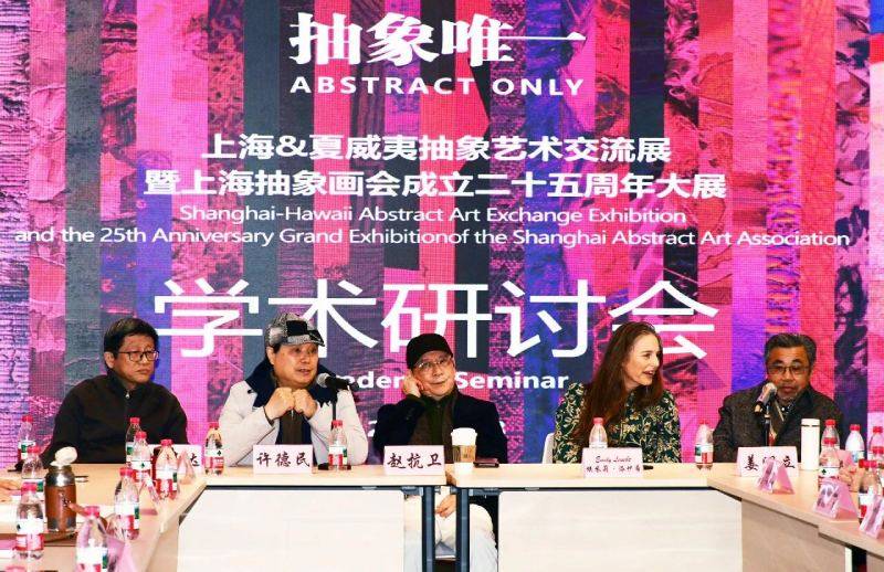 1月18日,抽象唯一——上海夏威夷抽象艺术交流展暨上海抽象画会成立二十五周年开幕式结束后举行了学术研讨会,围绕中美两地、上海和夏威夷各自的艺术风格、价值理念与创作方向展开了热烈的对话和讨论,这是一次别开生面的学术讨论会,尽管两地的语言有差异,但是作为抽象艺术,形式和符号交流却毫无违和感。真正找到了人类共同的形而上的交流密码,抽象是唯一最可靠的艺术桥梁。