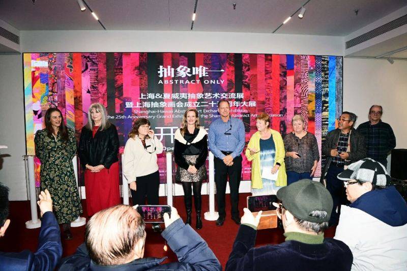 开幕式高朋满座,不同领域的专家、学者、教授、艺术家、领导们闻讯赶来,与来自美国夏威夷的九位艺术家一起,分享着难得的超越国界的抽象艺术盛典。出席开幕式的美国夏威夷嘉宾有:美国夏威夷岛艺术家联盟秘书长雪莉·格鲁姆、夏威夷大岛怀诺亚艺术中心总监艾米丽·洛伊特、艺术家维姬·范·弗莱希特曼、杰·杰·韦斯特 、鮑勃·盖奇、苏珊·舒尔茨 、朱莉·谢耶 、肯·温纳 、姜明立和夫人姚敏娟。