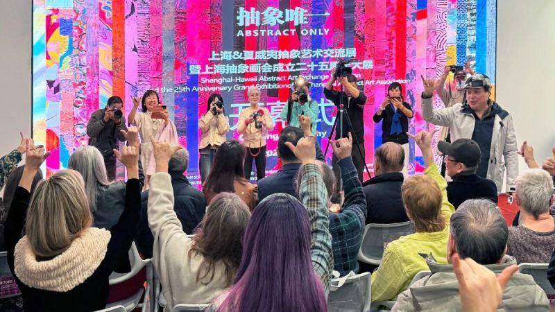 当抽象艺术的纯粹视觉语言跨越太平洋的阻隔,当东西方创意心灵在黄浦江畔交汇共鸣,2026年1月18日下午,“抽象唯一——上海夏威夷抽象艺术交流展暨上海抽象画会成立二十五周年大展”在上海刘海粟美术馆分馆盛大启幕。这场汇聚中美两国82位艺术家、百余件抽象绘画作品的文化盛宴,不仅是中美抽象艺术的对话,更是以艺术为媒搭建普世文明的桥梁,彰显世界文化交流的深层价值与人类共同的精神追求。展览至2月5日。