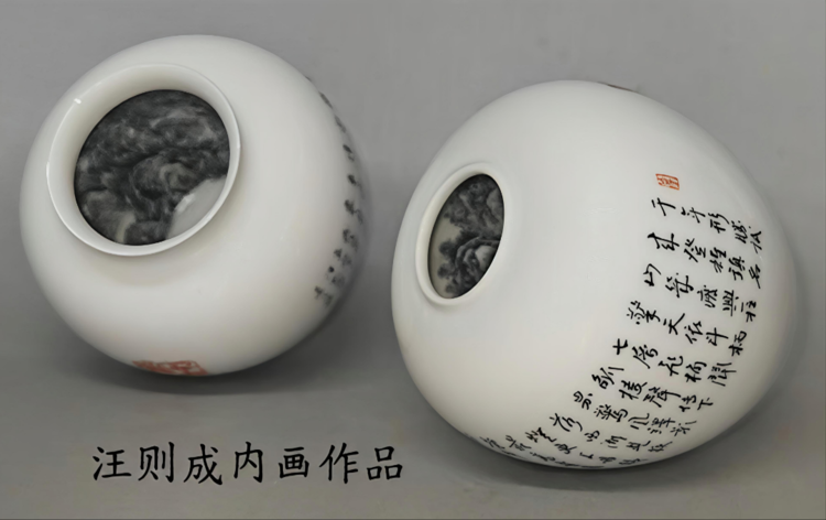 5、景德镇陶瓷泰斗、首届中国工艺美术大师王锡良先生,国大师刘远长、李菊生、李文跃、吴锦华、饶晓晴、孙燕明等! 中国陶瓷艺术大师袁世文、汪正焱、吴天麟、众多陶瓷艺术家为汪则成的内画作品题词。
