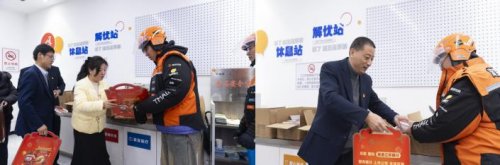 活动现场,年味浓郁、暖意融融。各服务点位前人头攒动,形成一道温馨的腊日风景线。暖粥派送区,工作人员早已将精心准备的腊八粥分装完毕。接过腊八粥的外卖小哥脸上洋溢着幸福的笑容,一句句“谢谢”传递着内心的感动。