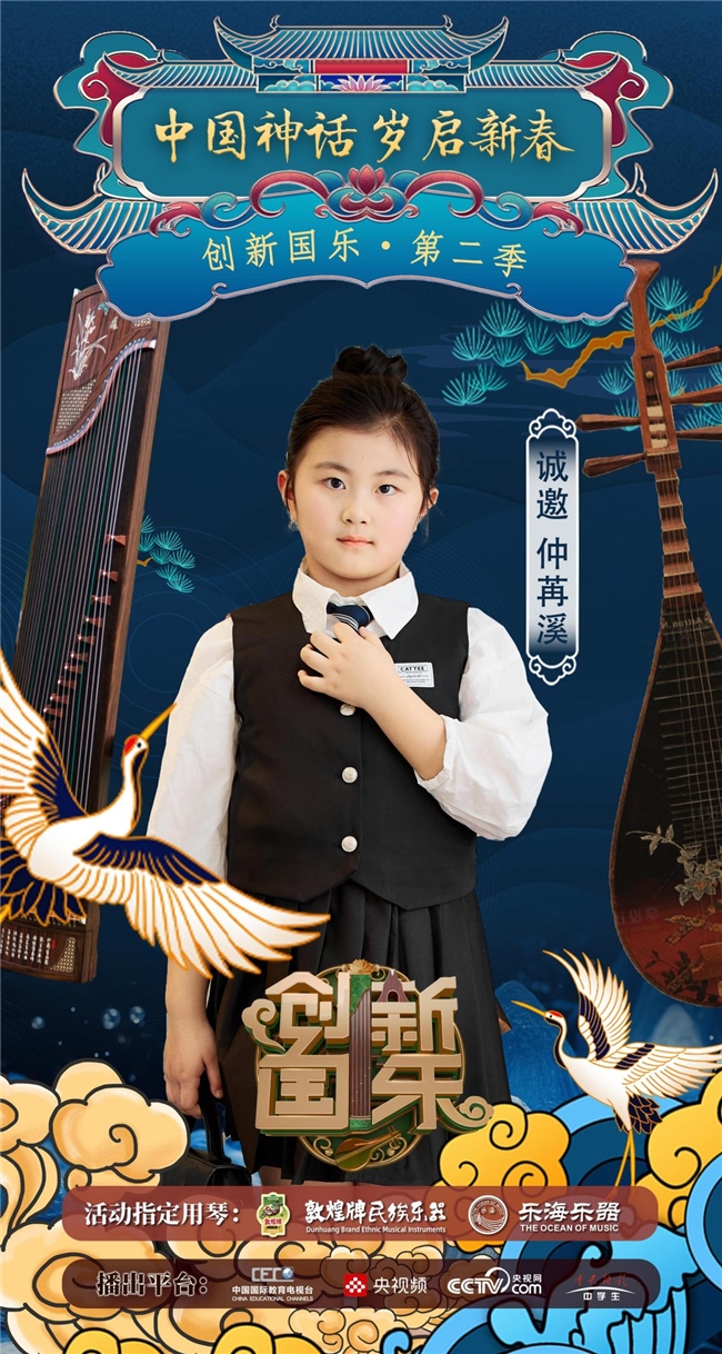 为持续推动中华优秀传统文化的创造性转化与创新性发展,打造具有时代气息的国乐精品,创新国乐第二季“中国神话 岁启新春”大型原创国乐盛典2026年2月8日在北京首钢园隆重启幕!在此,我们特别向学员仲苒溪发出正式演出邀请,期待她以更加成熟的技艺与表现力,与我们共同演绎华夏神话的壮丽诗篇。