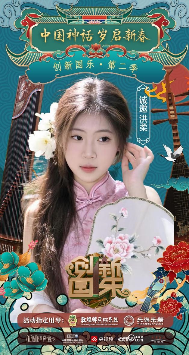 为持续推动中华优秀传统文化的创造性转化与创新性发展,打造具有时代气息的国乐精品,创新国乐第二季“中国神话 岁启新春”大型原创国乐盛典2026年2月8日在北京首钢园隆重启幕!在此,我们特别向学员洪柔发出正式演出邀请,期待她以更加成熟的技艺与表现力,与我们共同演绎华夏神话的壮丽诗篇。