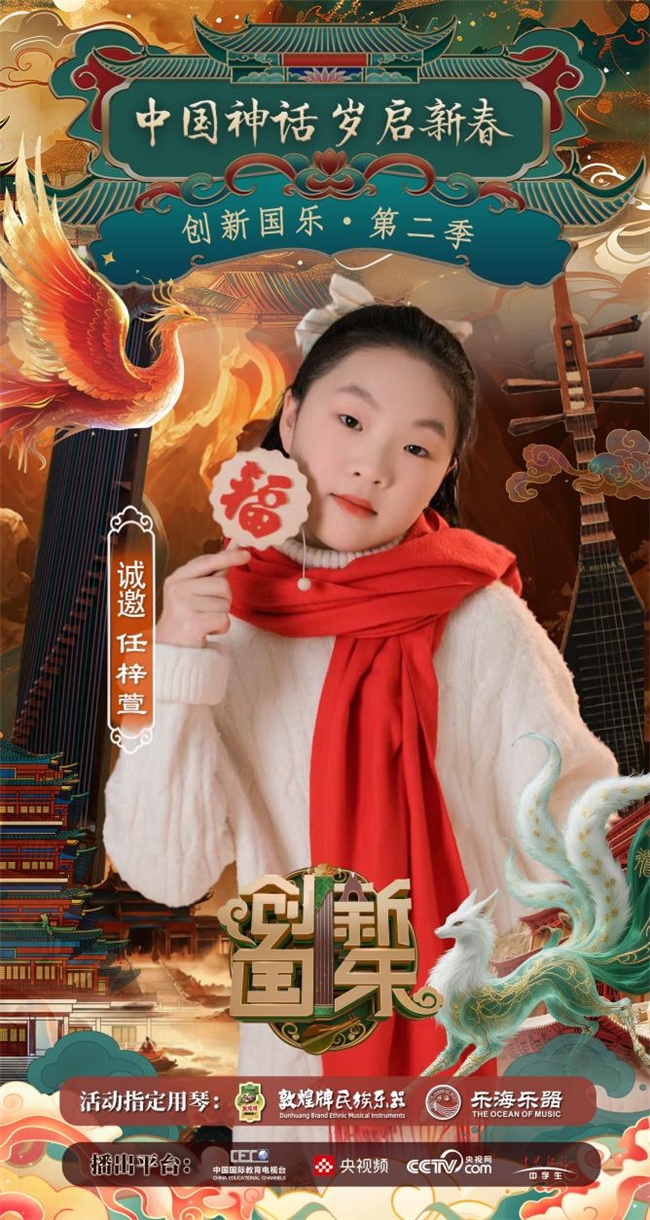 为持续推动中华优秀传统文化的创造性转化与创新性发展,打造具有时代气息的国乐精品,创新国乐第二季“中国神话 岁启新春”大型原创国乐盛典2026年2月8日在北京首钢园隆重启幕!在此,我们特别向学员任梓萱发出正式演出邀请,期待她以更加成熟的技艺与表现力,与我们共同演绎华夏神话的壮丽诗篇。
