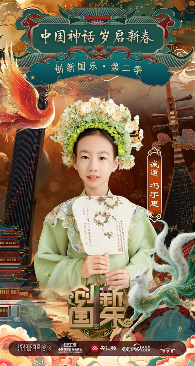 为持续推动中华优秀传统文化的创造性转化与创新性发展,打造具有时代气息的国乐精品,创新国乐第二季“中国神话 岁启新春”大型原创国乐盛典2026年2月8日在北京首钢园隆重启幕!在此,我们特别向学员冯宇惠发出正式演出邀请,期待她以更加成熟的技艺与表现力,与我们共同演绎华夏神话的壮丽诗篇。