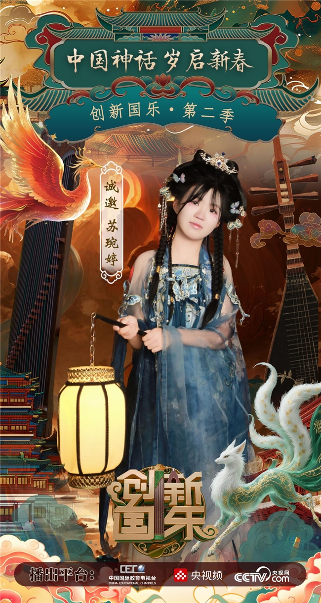 为持续推动中华优秀传统文化的创造性转化与创新性发展,打造具有时代气息的国乐精品,创新国乐第二季“中国神话 岁启新春”大型原创国乐盛典2026年2月8日在北京首钢园隆重启幕!在此,我们特别向学员苏琬婷发出正式演出邀请,期待她以更加成熟的技艺与表现力,与我们共同演绎华夏神话的壮丽诗篇。