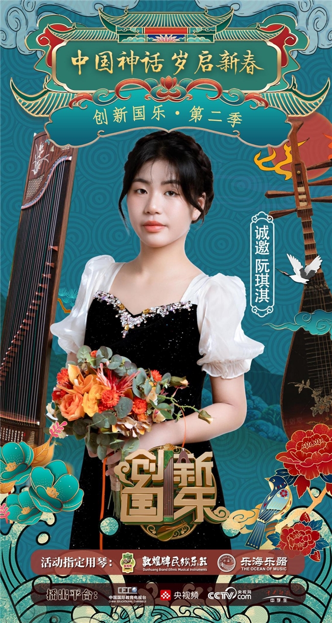 为持续推动中华优秀传统文化的创造性转化与创新性发展,打造具有时代气息的国乐精品,创新国乐第二季“中国神话 岁启新春”大型原创国乐盛典2026年2月8日在北京首钢园隆重启幕!在此,我们特别向学员阮琪淇发出正式演出邀请,期待她以更加成熟的技艺与表现力,与我们共同演绎华夏神话的壮丽诗篇。