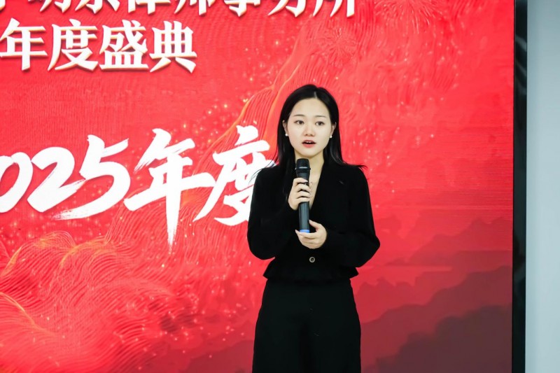 紧接着,律所执行主任余焱焱登台分享,她将目光聚焦于团队建设与日常运营,细数过去一年在服务保障、团队赋能、机制优化等方面的点滴进展,字里行间满是对这个凝聚向心力的团队的珍视。致辞中,余主任特别向蓝雪集团致以诚挚谢意,感谢其始终如一的信任与支持,并表态未来将持续深化双方合作,以专业赋能伙伴发展,携手筑牢共赢基石,共赴稳健长远的发展之路。