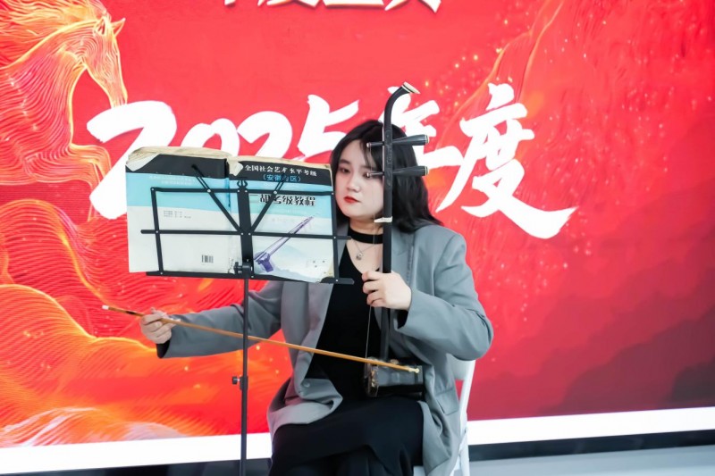 暖心寄语落幕,一场震撼人心的听觉盛宴随即登场,将现场氛围推向第一个小高潮。主持人余心怡亲自献艺,一曲二胡名曲《战马奔腾》响彻全场,弓弦起落间,激昂的旋律如万马奔腾、势不可挡,磅礴气势扑面而来,将勇往直前、无畏挑战的精神诠释得淋漓尽致。这旋律恰如申亭明条人在工作中直面难题、攻坚克难的奋进姿态,每一个音符都激荡着初心与力量,赢得全场掌声雷动、喝彩不断。