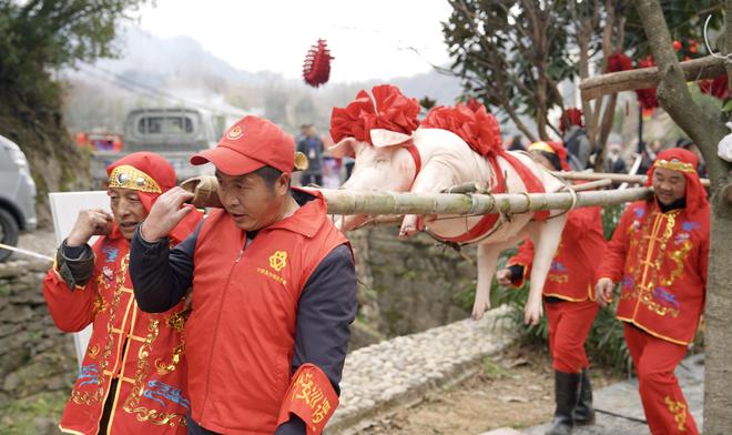 图:村民扛着年猪进行民俗游行(杨稳摄)