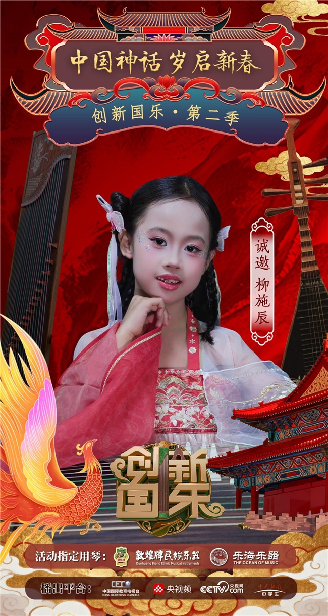 为持续推动中华优秀传统文化的创造性转化与创新性发展,打造具有时代气息的国乐精品,创新国乐第二季“中国神话 岁启新春”大型原创国乐盛典2026年2月8日在北京首钢园隆重启幕!在此,我们特别向学员柳施辰发出正式演出邀请,期待她以更加成熟的技艺与表现力,与我们共同演绎华夏神话的壮丽诗篇。