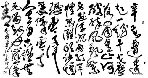 我们立于传承与创新的交汇点,中国书画这株艺术古木,在当代思想的浇灌下绽放新枝,刘恒志教授便以赤忱之心为培土,以笔墨匠心作甘霖,守着千年文脉的根,又向着时代长空伸枝展叶。他的每一幅作品,皆是艺术家与时空的深情对话,是笔墨与灵魂的极致共鸣,一笔一画间,藏着对传统书法的敬畏与坚守,一撇一捺里,漾着对当代审美的探索与表达。