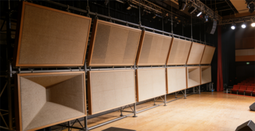 反声罩平时置于舞台上空和后区地面,使用时,在台口位置组装,为现场创造较好的自然声学环境。