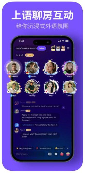 HelloTalk的核心亮点的是“真实场景+即时反馈”,这是很多软件比不了的。你发布的英语动态,全球母语者通常5分钟内就能给出精准纠错和学习建议,不仅能改对语法错误,还能学到最地道的表达和文化背景。更贴心的是它的直播课堂和语聊房:母语主播一对一或小组授课,日常对话、职场面试、雅思模考等主题全覆盖,实时纠音+同步字幕翻译,用户日均开口时长是传统AI工具的3.8倍;24小时开放的全球语聊房,从日常问候到旅游出行,随时能旁听或开麦交流,实时翻译让跨语言沟通零障碍,相当于把“国际语言角”装进口袋。
