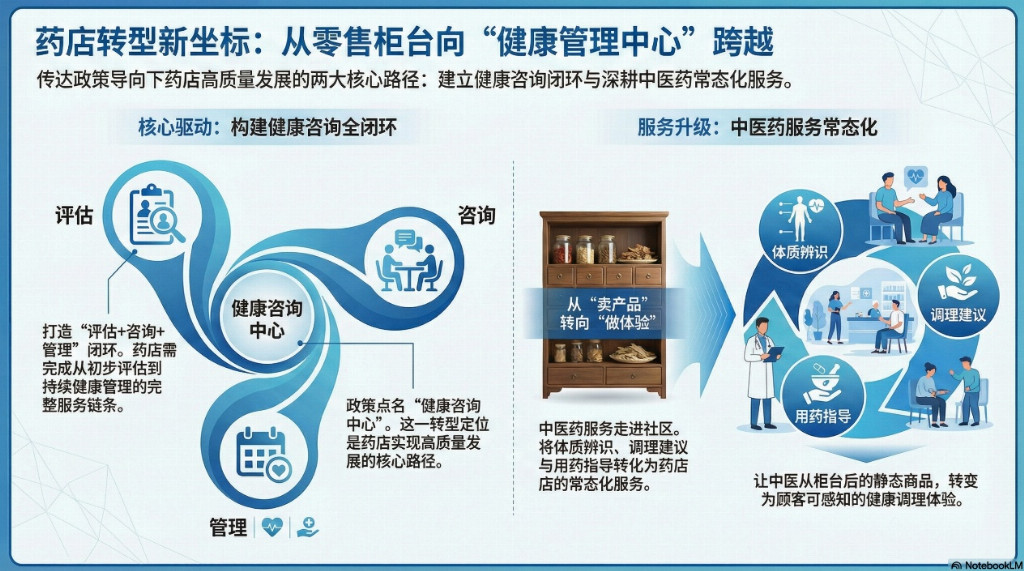 政策点名"健康咨询中心",其实是在给行业指路:药店要能完成从评估、咨询到持续管理的闭环。闭环跑得起来,才谈得上高质量发展。