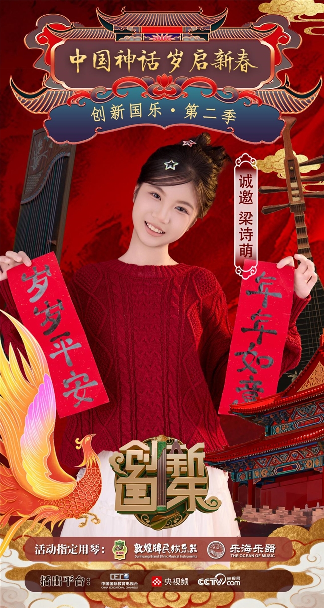 为持续推动中华优秀传统文化的创造性转化与创新性发展,打造具有时代气息的国乐精品,创新国乐第二季“中国神话 岁启新春”大型原创国乐盛典2026年2月8日在北京首钢园隆重启幕!在此,我们特别向学员梁诗萌发出正式演出邀请,期待她以更加成熟的技艺与表现力,与我们共同演绎华夏神话的壮丽诗篇。