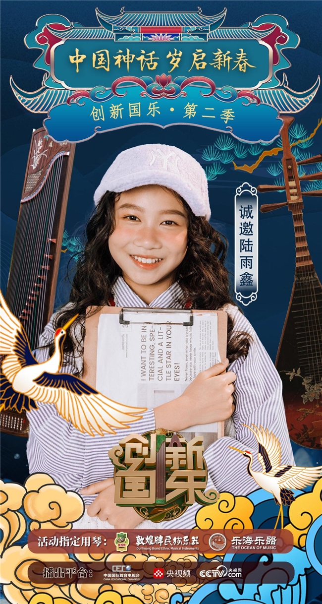 为持续推动中华优秀传统文化的创造性转化与创新性发展,打造具有时代气息的国乐精品,创新国乐第二季“中国神话 岁启新春”大型原创国乐盛典2026年2月8日在北京首钢园隆重启幕!在此,我们特别向学员陆雨鑫发出正式演出邀请,期待她以更加成熟的技艺与表现力,与我们共同演绎华夏神话的壮丽诗篇。