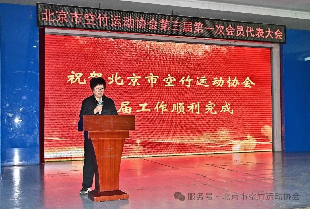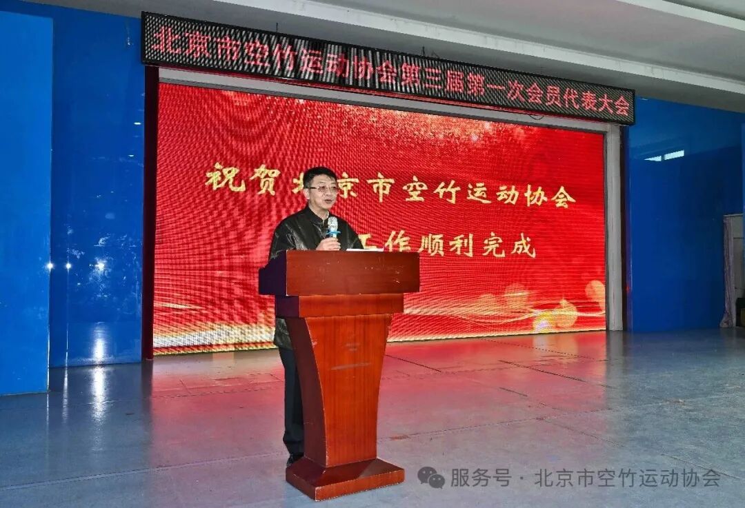 1月 24 日,北京市空竹运动协会换届大会暨第三届第一次会员代表大会在北京金球国际会展中心隆重召开。来自全市各地的 100 余名会员代表齐聚一堂,部分单位会员代表列席会议,共同见证协会发展史上的重要里程碑。大会严格恪守《社会团体登记管理条例》及协会章程相关规定,有序完成各项既定议程,选举产生第三届理事会与监事会,郭宝庆当选新一届协会会长。