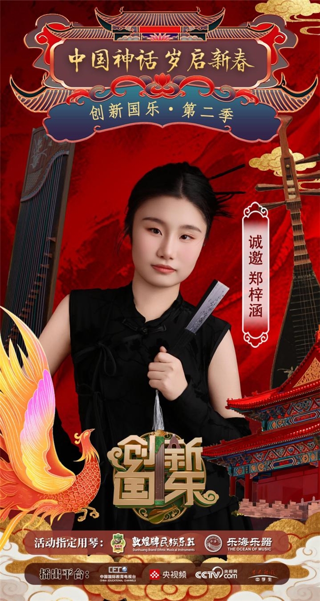 为持续推动中华优秀传统文化的创造性转化与创新性发展,打造具有时代气息的国乐精品,创新国乐第二季“中国神话 岁启新春”大型原创国乐盛典2026年2月8日在北京首钢园隆重启幕!在此,我们特别向学员郑梓涵发出正式演出邀请,期待她以更加成熟的技艺与表现力,与我们共同演绎华夏神话的壮丽诗篇。