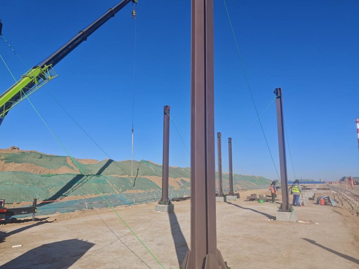 近日,在中国化学工程第十一建设有限公司西北分公司(以下简称“西北分公司”)承建的国家能源集团宁夏煤业MTP工艺技术升级改造项目现场,首榀钢结构管架平稳、精准地就位于预埋螺栓之上,标志着全厂外管廊工程正式进入钢结构安装阶段,也奏响了西北分公司在2026年宁东基地施工生产序曲。