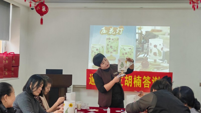 活动现场,续期收展专员早早布置好场地,备好透明灯罩、缤纷干花、专用胶水等材料。活动开始后,工作人员细致讲解制作步骤与创意搭配技巧,指导客户挑选干花、设计图案。客户们热情高涨,发挥奇思妙想,将形态各异的干花精心粘贴在灯罩上,专员们则在一旁适时提供帮助,同时与客户亲切攀谈,解答保单续期、权益变更等疑问。