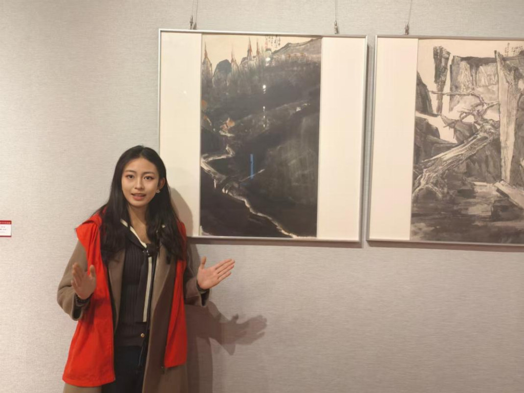 在美术馆展厅里,曲阜师范大学美术与书法学院“致知力行”实践队的队员正站在水墨作品前,将专业的笔墨语言转化为观众听得懂的讲解。而她的讲述,正是实践队“把课堂搬进展厅,让理论扎根现场”的生动缩影。