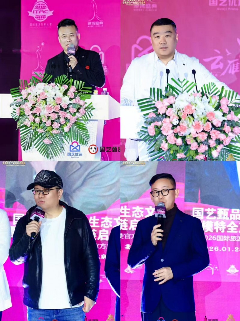国艺甄品颜值生态创始人王钧颐在致辞中详细阐述了品牌的发展愿景与布局规划,他表示,国艺甄品致力于构建 “男团女团 + 国际旅游大使 + 模域盛典 + 电商 + 短剧 + 综艺 + 城市会客厅” 的全产业链生态,而文化IP合作是这一生态中的城市文旅展示窗口,本次发布会通过与知名非遗传承人王馨鸿及其牡丹绘品牌的联动,将让非遗技艺在时尚场景中焕发新生,同时通过多板块协同发力,打破模特产业传统发展边界,实现 “线上线下商业模式闭环”。此外,国艺甄品颜值生态创始人王钧颐带领各板块合作伙伴集体亮相,展现了品牌强大的资源整合能力与团队凝聚力。